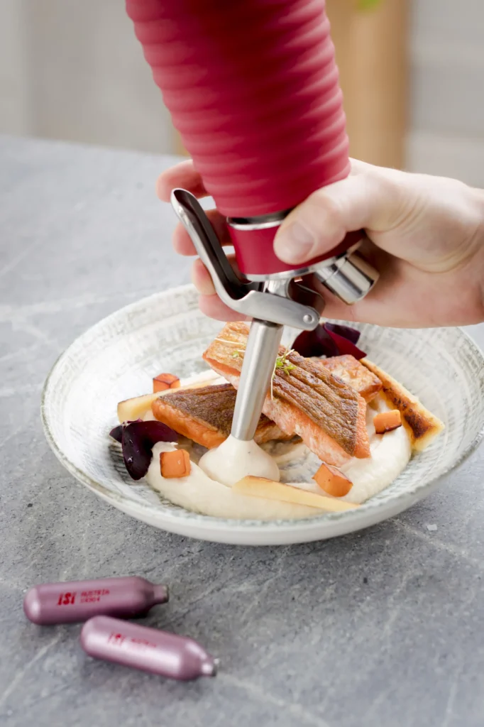 Die iSi Gourmet Whips tragen zudem zu optimierten Abläufen in der Küche bei. Dank des geschlossenen Systems können Zubereitungen HACCP-konform gekühlt gelagert werden – bei gleichbleibender Qualität und ohne Geschmacksverlust. Komponenten lassen sich vorbereiten und bei Bedarf sofort einsetzen, was insbesondere in Stoßzeiten wertvolle Zeit spart.